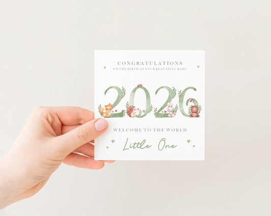 2026 Green Woodland Baby Card