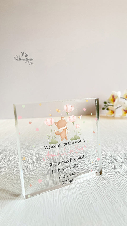 Personalised Fox Flowers Acrylic Block