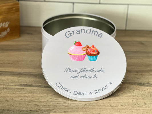 Personalised Please Fill With Cake & Return Cake Tin