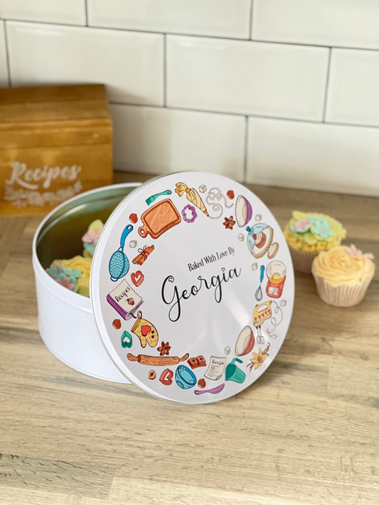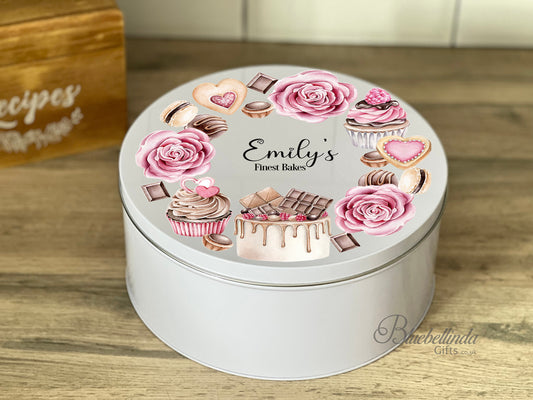 Personalised Roses And Cakes Cake Tin