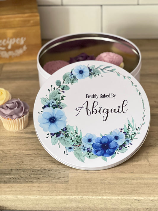 Personalised Blue Floral Cake Tin