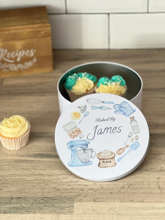 Personalised Blue Mixer Wreath Cake Tin