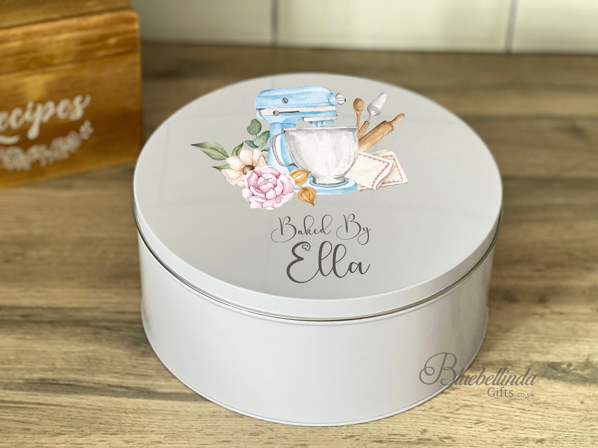 Our stunning personalised blue mixer baking tins would make a lovely gift for that special baker In your life or why not treat yourself to show off your homemade goodies, these tins can be filled with a full cake, Cup Cakes, cookies, biscuits, brownies and so much more.