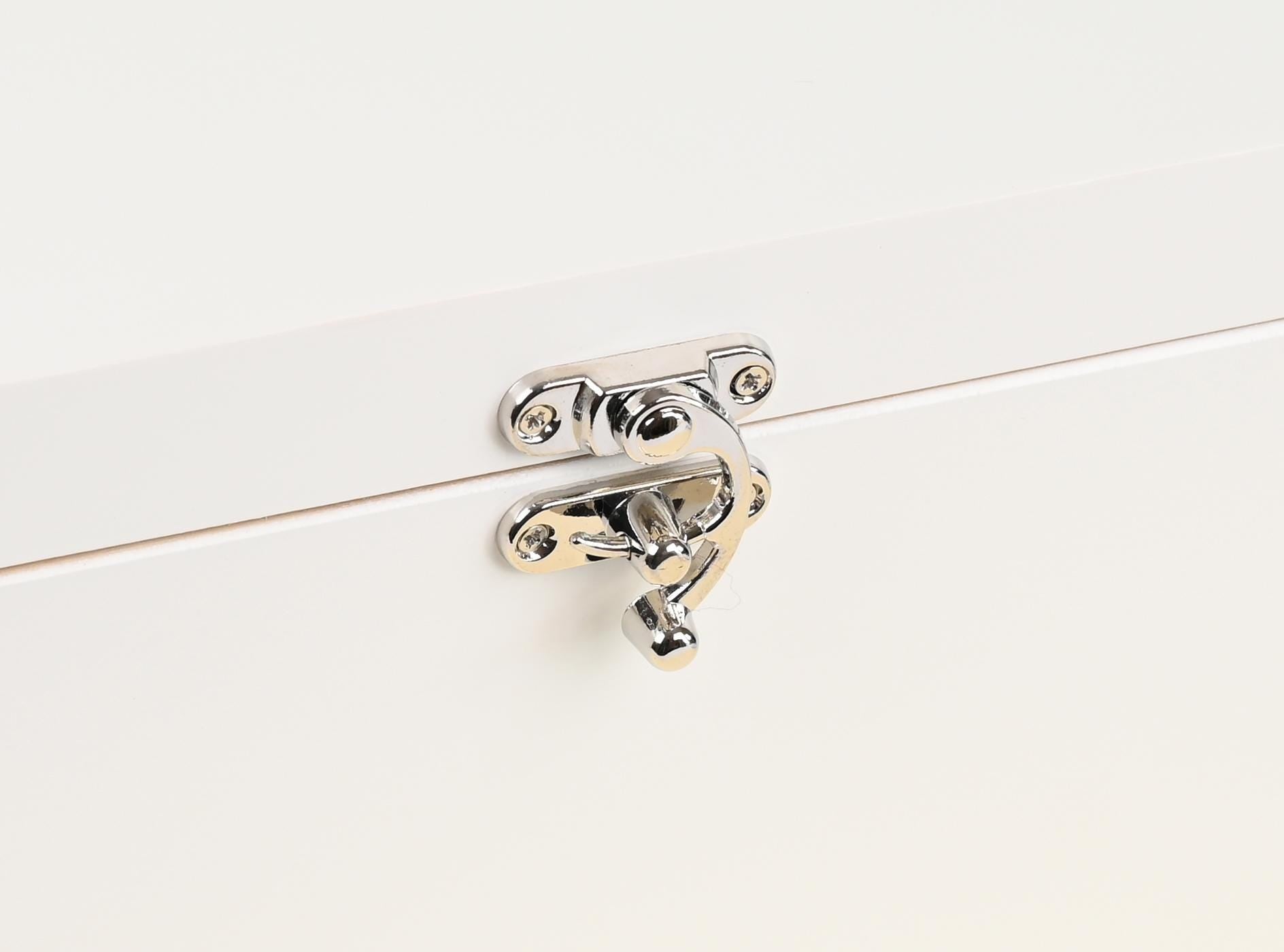 These are white wooden boxes with your details printed directly onto the lid using the latest high quality printing technology. The inside of the box has a natural wood finish. The boxes have metal hinges and a beautiful chrome strong hardware to hold shut ensuring they last for years. these are ideal to use year after year.