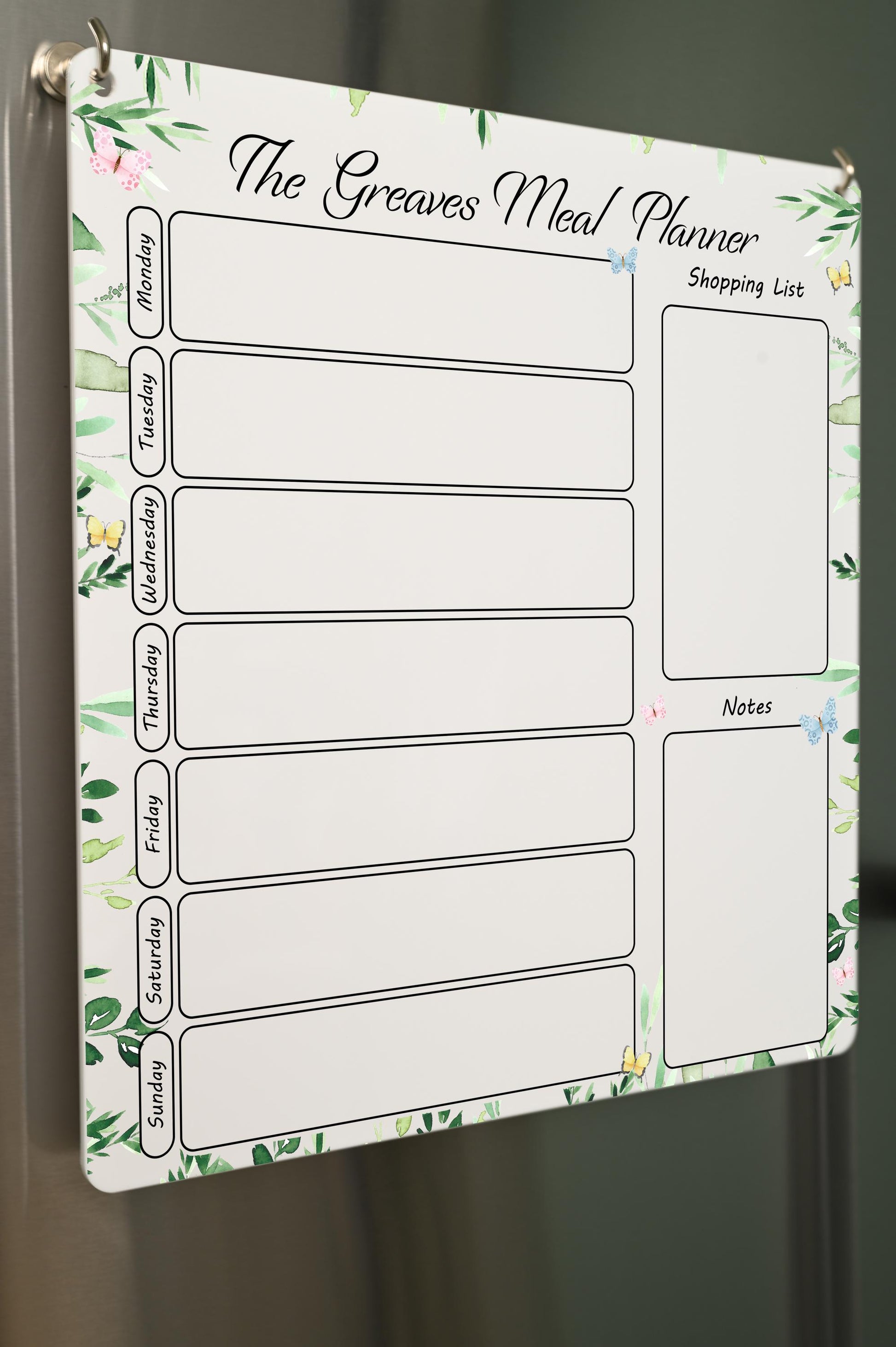 Butterfly Acrylic Fridge Meal Planner with Shopping List and Notes Section