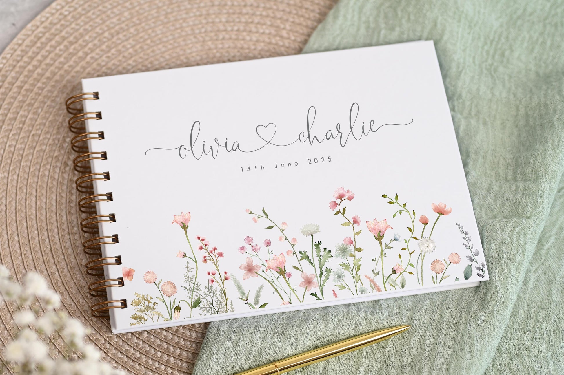Personalised Wedding Guest Book, High Quality Hand-printed Book, Floral flowers wildflowers Modern Wedding Design, Wedding Photo Album